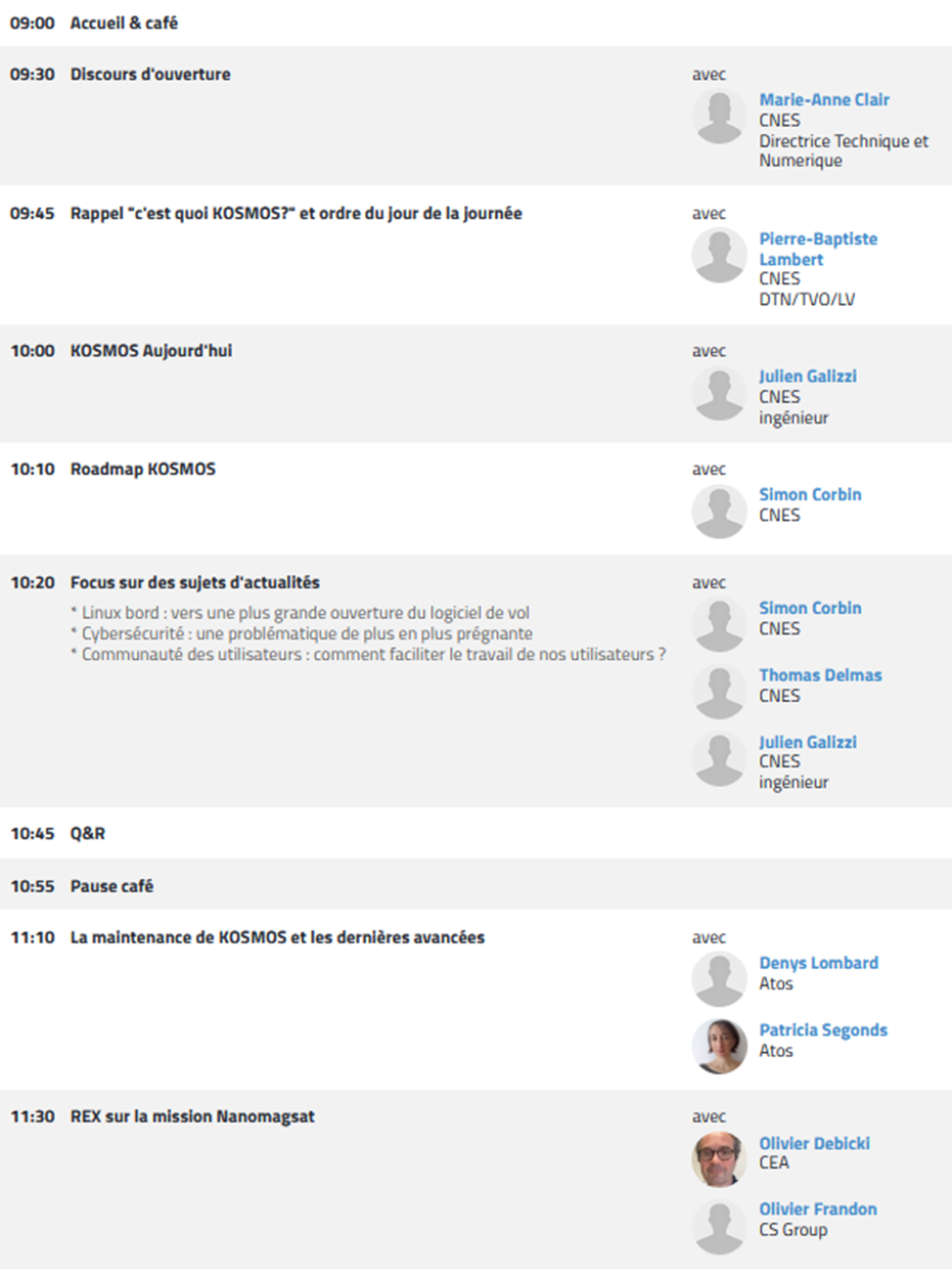 Au fil des ans, les utilisateurs de KOSMOS se sont multipliés dans l’écosystème spatial français et européen. Qu’ils soient industriels (USpace, Hemeria, etc.), scientifiques (IJClab, CEA, LATMOS, etc.), universitaires (Nanolab Academy) ou institutionnels (CNES, ESA, etc.), tous ont eu des expériences variées et différentes avec KOSMOS, mis en place pour des missions de tous types (charges utiles et instruments scientifiques, plateformes satellites ou rover ou équipements spécialisés).